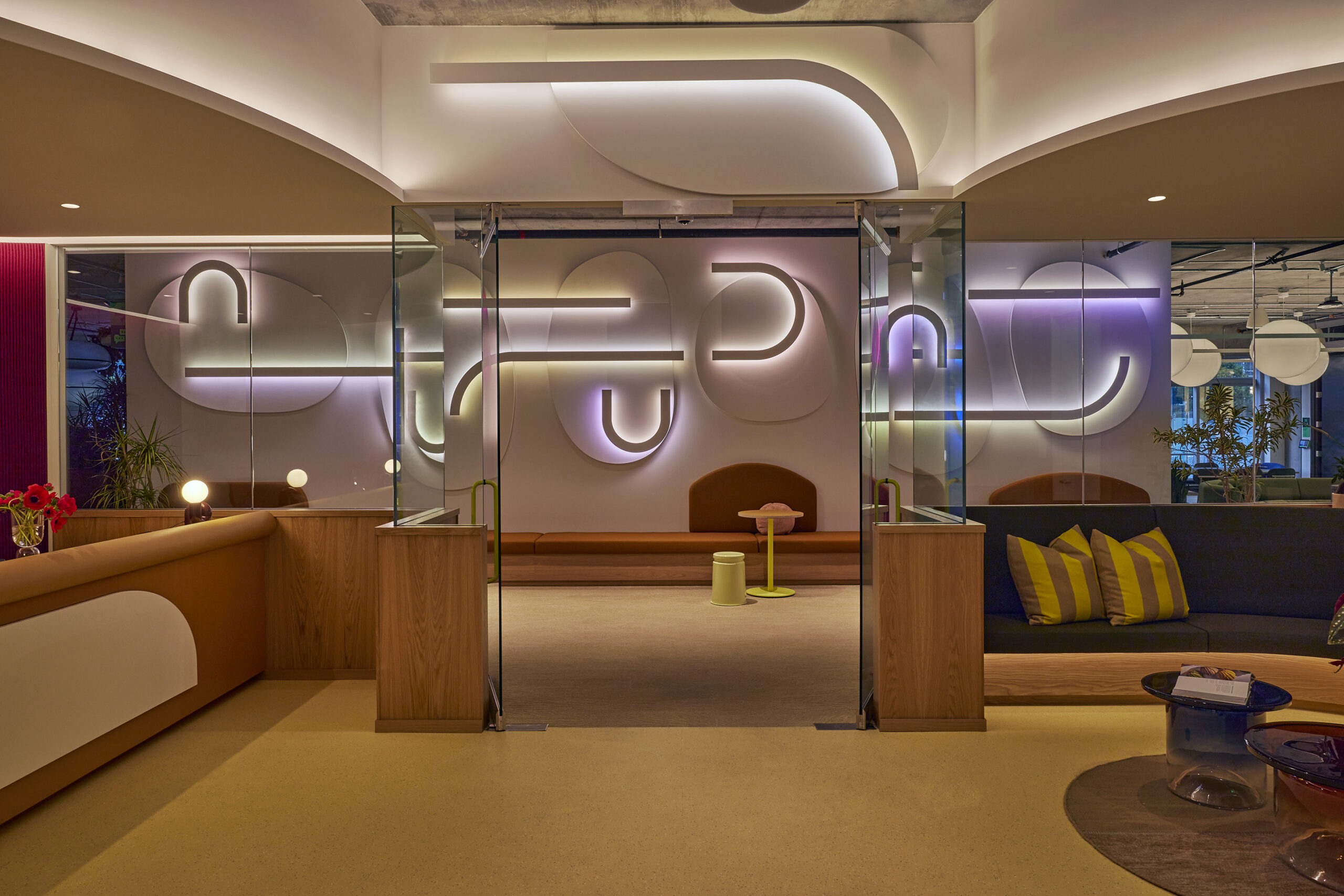 Colour plays a vital role in the scheme. “Intuit wanted a bold and fresh character expressed in this project,” adds Giesenhagen. “Simultaneously, we wanted a feeling of fluidity and calm. The colour palette was our mechanism and solution. We centred our colour choices by utilising yellow as a neutral. Base tones of tan, putty, white and yellow consistently warmed up the space to set a sophisticated backdrop. Thereafter, we used saturated colours to dial things up or dial down energies, according to each area’s objective.”