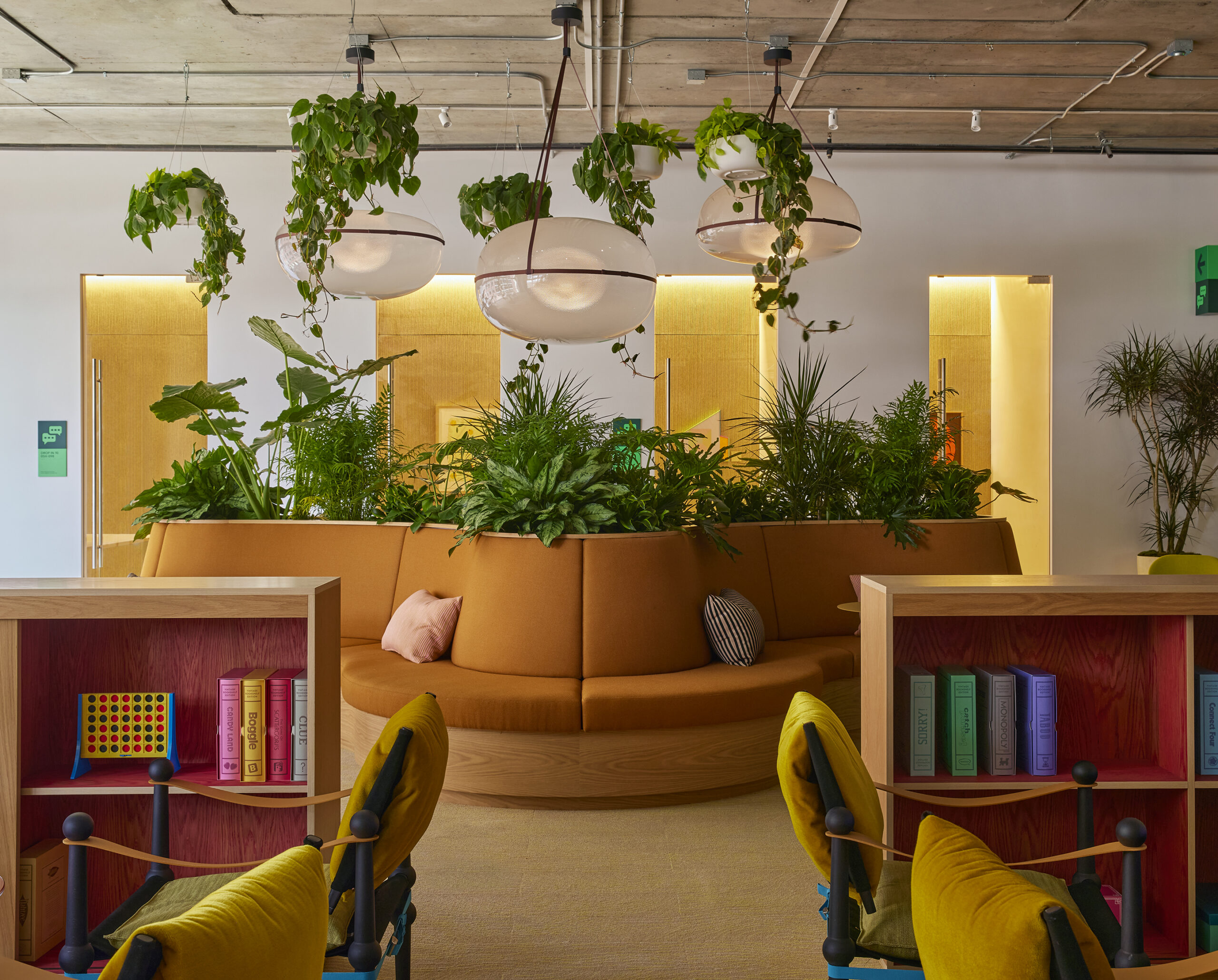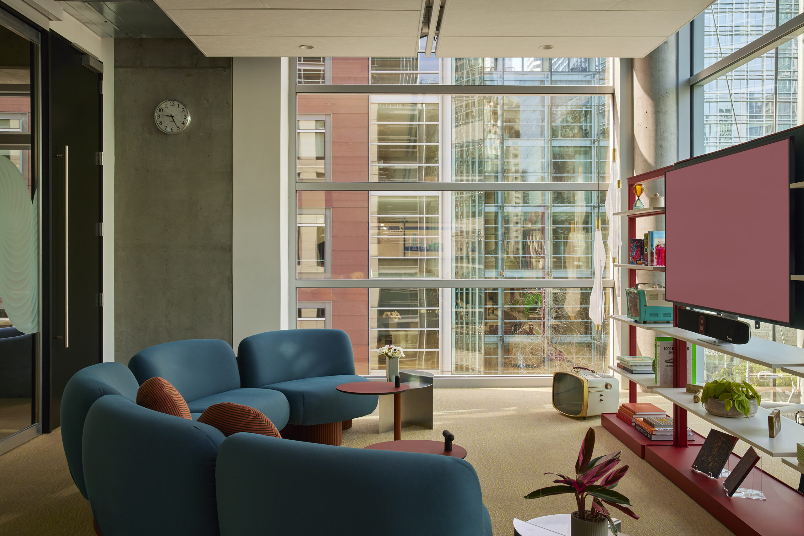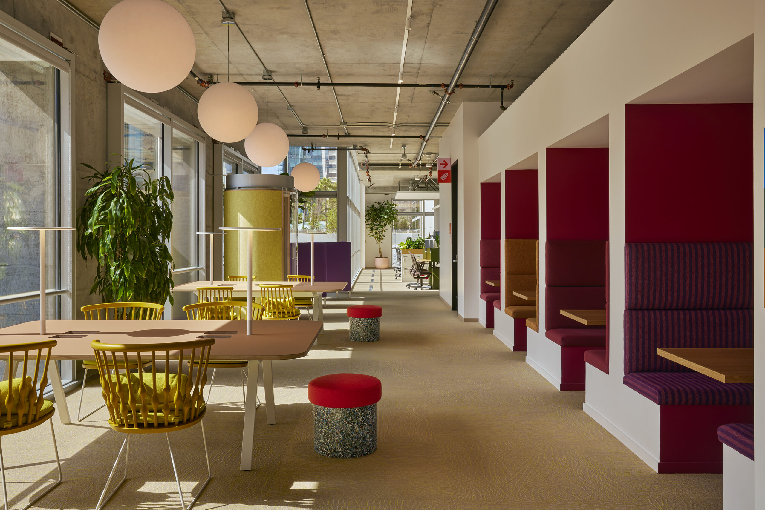 Giesenhagen’s design approach has been a joyful celebration of the Bay Area’s entrepreneurial and creative spirit, as well as colour. A central tenet of the design was to create a variety of spaces to meet the needs of today’s workforce – here numbering some 200. The office is arranged around “neighbourhoods” for teams, each anchored by shared team tables, playful integrated millwork and biophilic design elements that create a warm, hospitality-style ambience. A mix of assigned and communal workstations, alongside an array of ergonomic set-ups and quiet nooks, offer options for every type of worker.