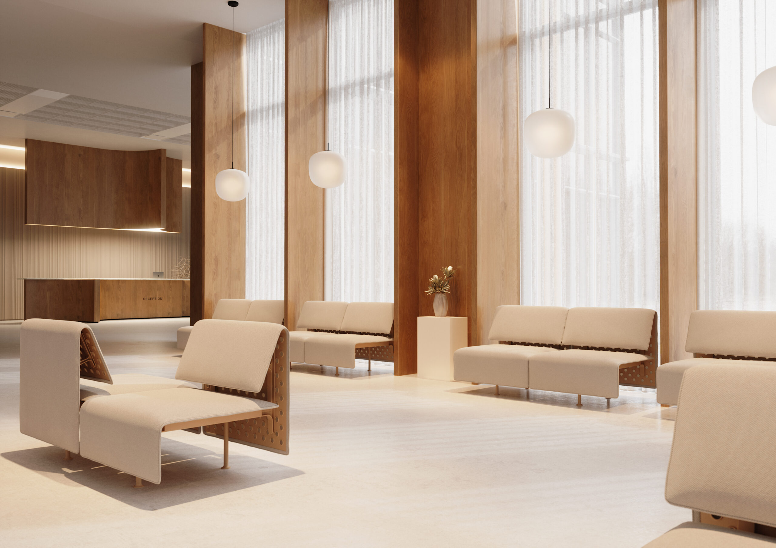 Mario Ferrarini: The project was born from the idea of delivering the same outstanding performance in both small and large configurations. It’s designed to adapt seamlessly to a wide range of needs, from compact waiting areas and contract spaces to expansive environments like airport lounges. At its core, the concept revolves around customisation: clients have the freedom to decide how many elements to include in their configuration, perfectly aligning the design with other selected furnishings. The real strength of the project lies in its versatility: it thrives both as part of a dynamic composition and as a stunning stand-alone piece. Modularity and flexibility naturally connect with the idea of circularity and repetition. Just as materials can be recycled multiple times, this sofa can be multiplied, through countless elements and countless configurations. It’s a perfect blend of concepts that might seem different at first, yet come together under a single, powerful idea: multiplication of form, function and possibility.