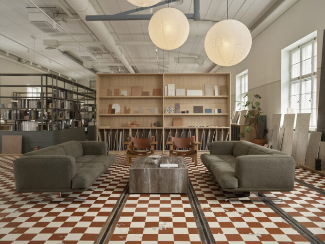 Today, a dozen different companies operate within the building, including Fyra. The firm designed a versatile new office for itself in the building’s former electrical laboratory. It was a quick turnaround for the team, who began working on the building at the end of 2023 and moved into their new space less than a year later. “It was quite a tight schedule,” says Tiina Närkki, a partner at Fyra. “Our last space was only about 200 metres away in an old chocolate factory. It was more of a conventional office. I think people have enjoyed our new premises, especially the amount of light that we get through the tall windows.”