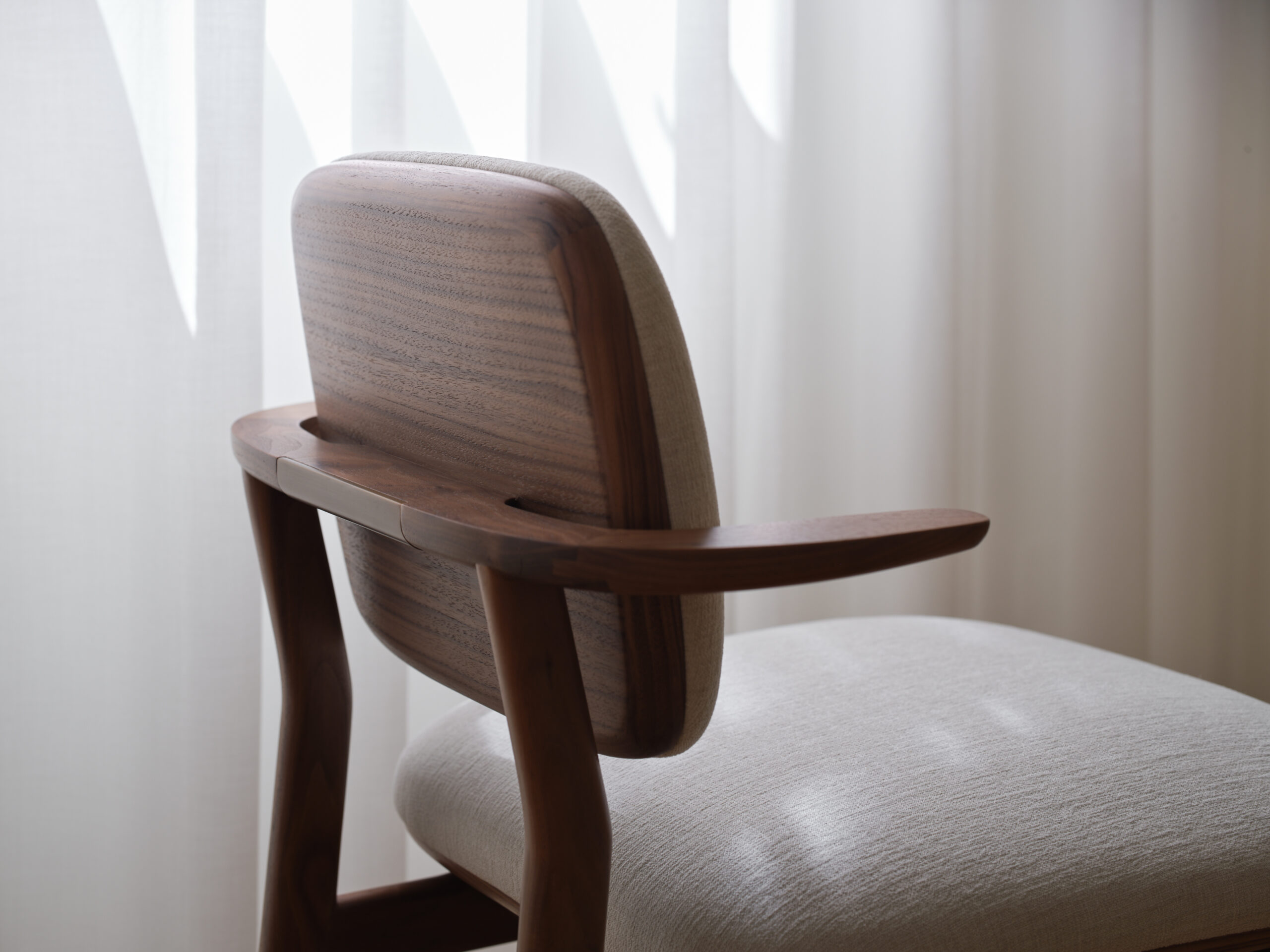 Alessandro Munge: From the beginning, we wanted Marea to express a sense of craftsmanship that feels timeless, while responding to the technical requirements of contemporary furniture. The design is rooted in traditional woodworking principles such as clarity of structure, honest construction and carefully balanced proportions. Rather than relying on decorative gestures, the focus was on creating a frame that feels light yet grounded, where each element has a clear purpose. Subtle shaping is used only where necessary, particularly in the backrest, to enhance comfort and visual softness without compromising structural integrity.