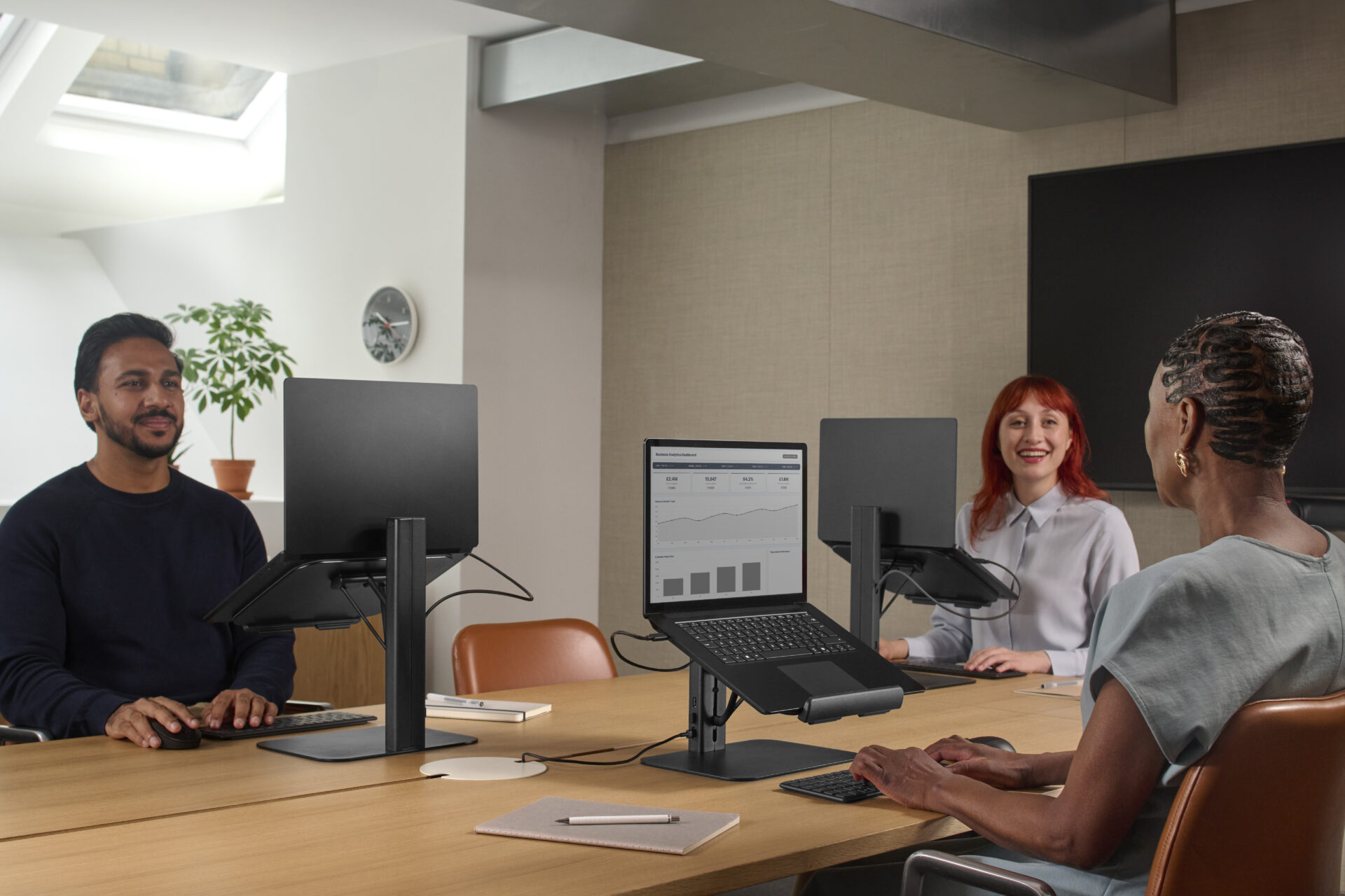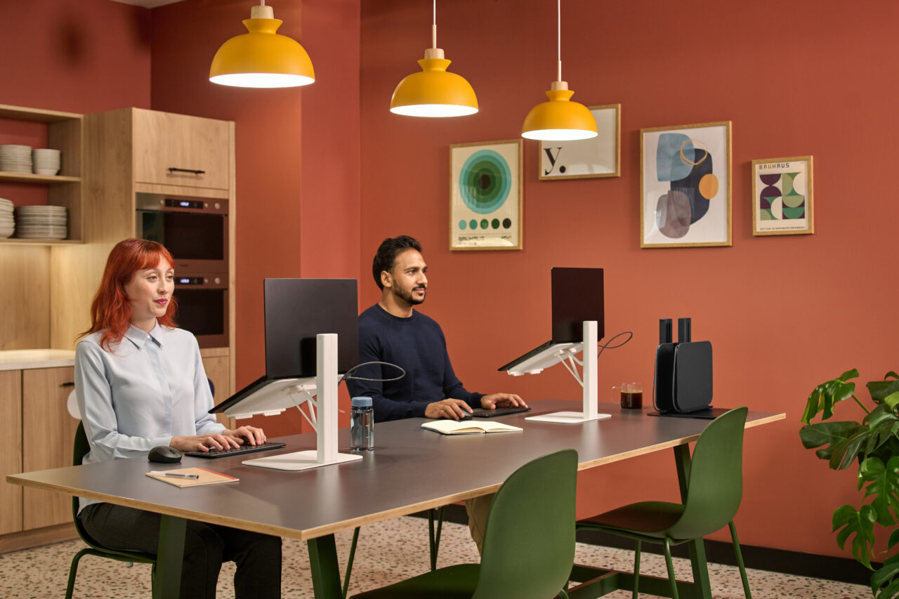 As laptop usage has become ubiquitous (driven by hybrid working patterns and the need for mobility across fluid office environments) workers are spending hours hunched over screens positioned far below optimal eye level. The result? Chronic neck and back pain, digital eye strain, and a troubling disconnect between progressive workplace design and basic human ergonomics.