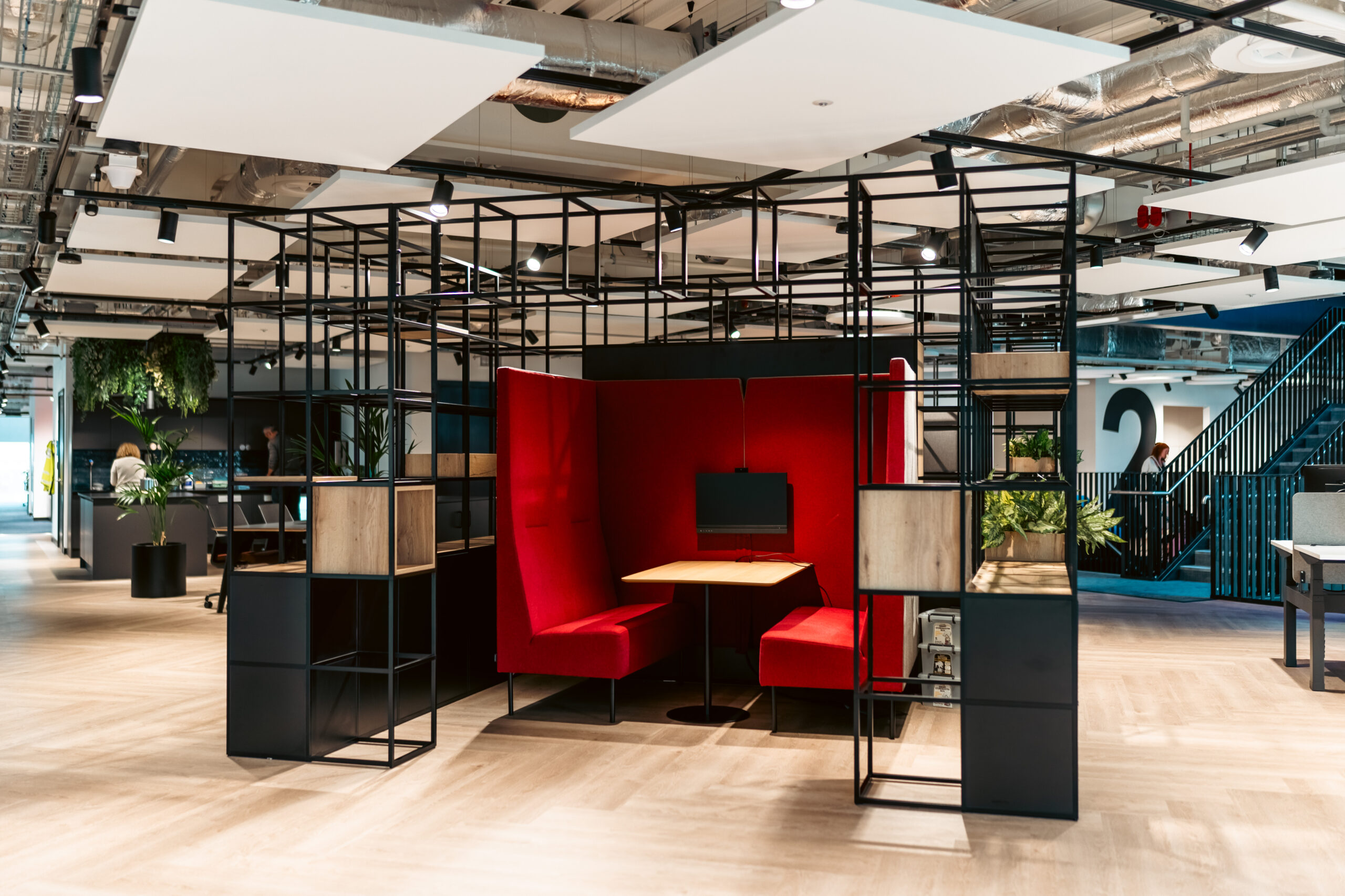 Whether subtly separating workstations, signalling departmental areas or creating relaxed breakout pockets, Plexus acts as both a functional organisational tool and design-led feature that enhances wayfinding and spatial clarity.
