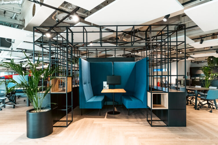 Zurich Insurance recently demonstrated the system’s flexibility when redesigning their workspace. By reusing and reconfiguring existing Plexus elements, they created defined zones, improved acoustic control and introduced visual anchors – all without permanent construction work. The result was a branded, functional and sustainable environment with minimal waste and interruption.